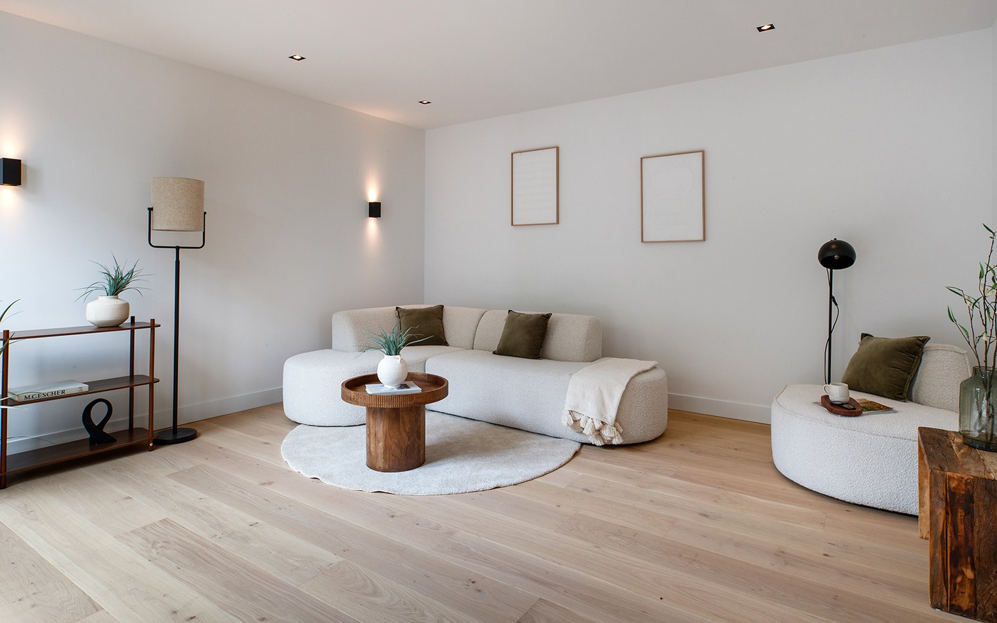 Het afwerkingsniveau is hoogwaardig: eikenhouten vloeren met vloerverwarming, strak gestucte wanden en plafonds, een luxe badkamer met inloopdouche en ligbad, en een doordacht lichtplan. Alles wordt instapklaar opgeleverd.