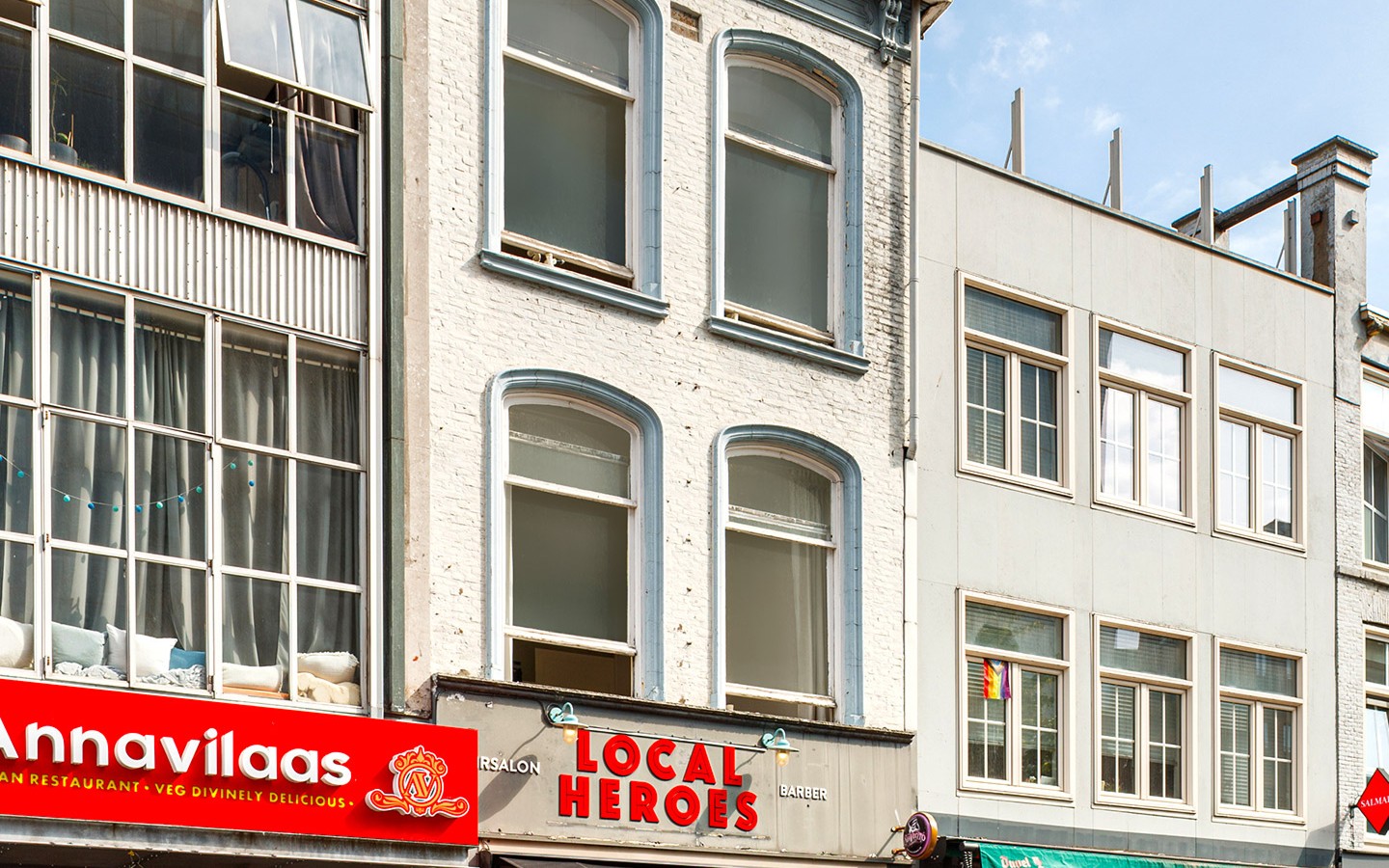 Op de begane grond bevindt zich een commerciële ruimte, waarmee het pand een krachtige mix van stedelijk wonen en levendige bedrijvigheid biedt.